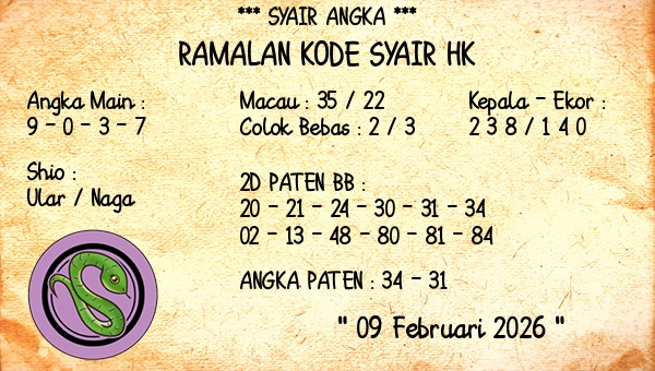 SYAIR PREDIKSI KELUARAN HK, 9-Feb-2026